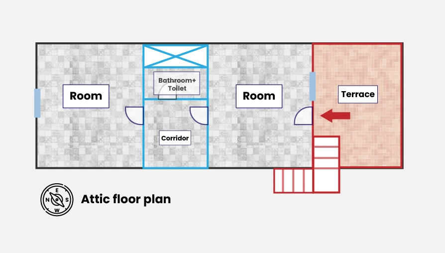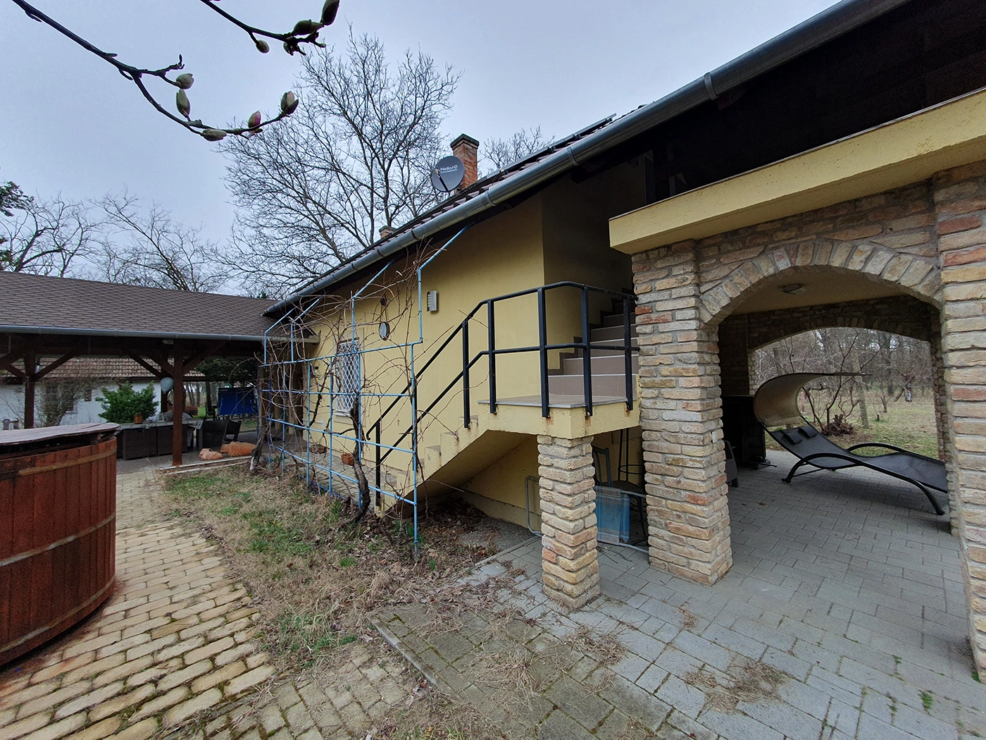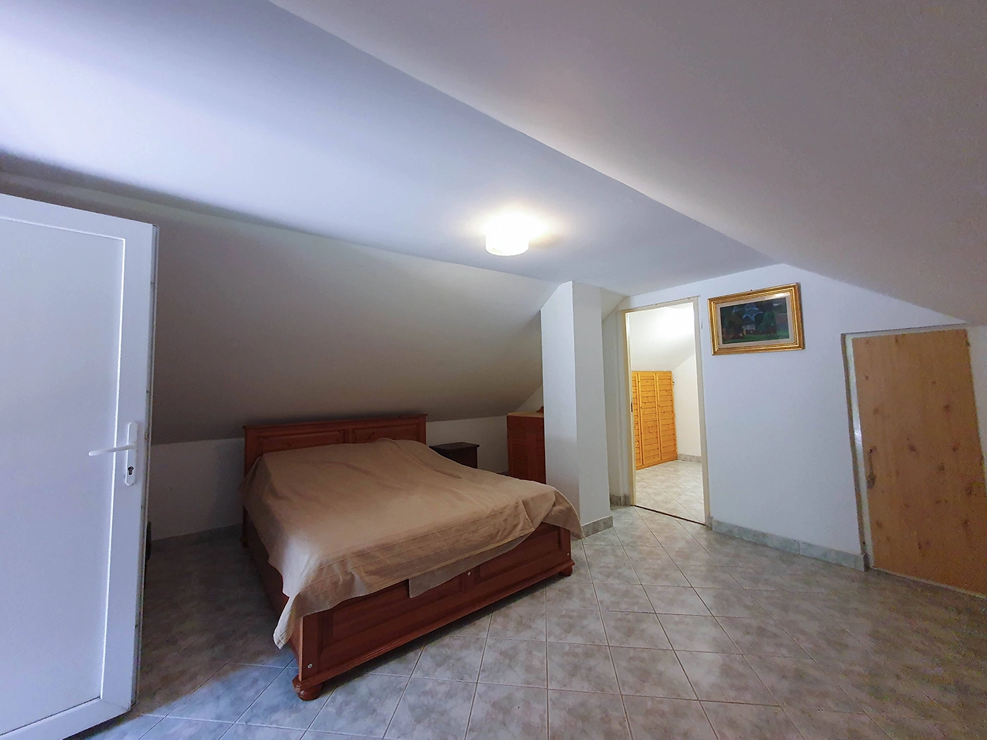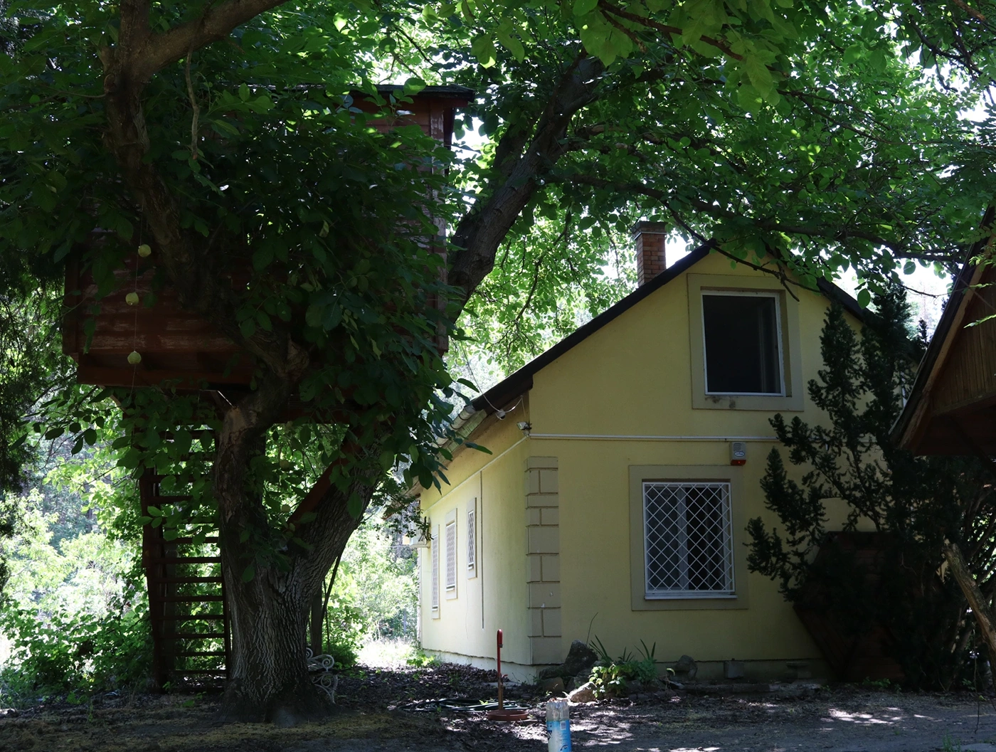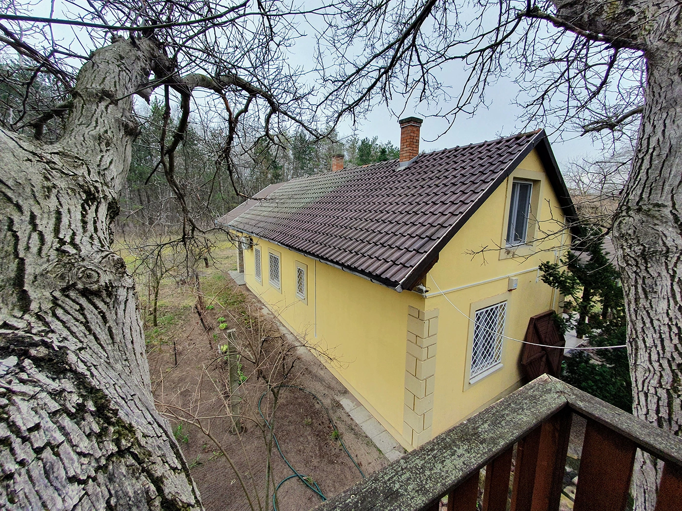 The house’s terrace and built-in grill are perfect for gatherings with friends and barbecues. The upstairs apartment is completely separate and only accessible from the outside. In addition to two rooms, a bathroom with a toilet, and a hallway, it also has a 22 sqm terrace.