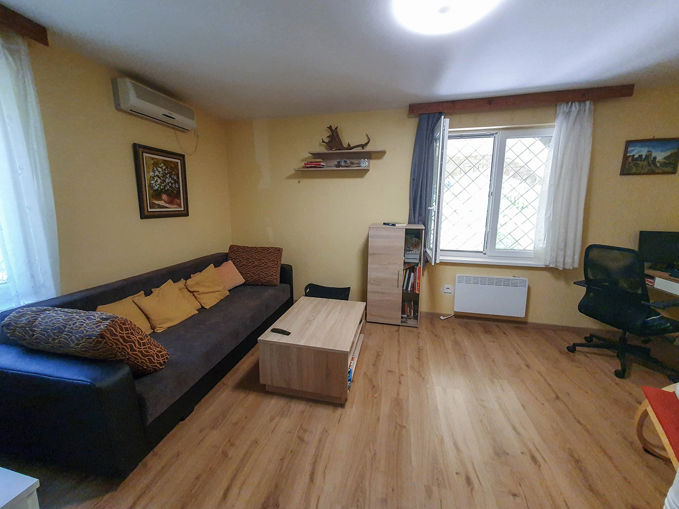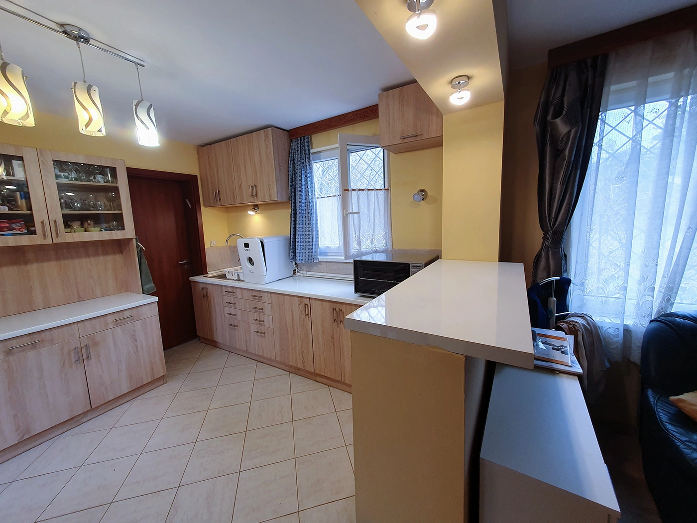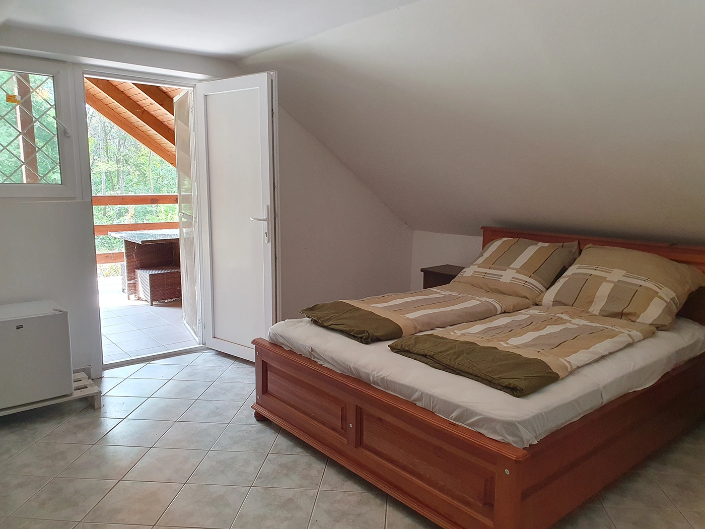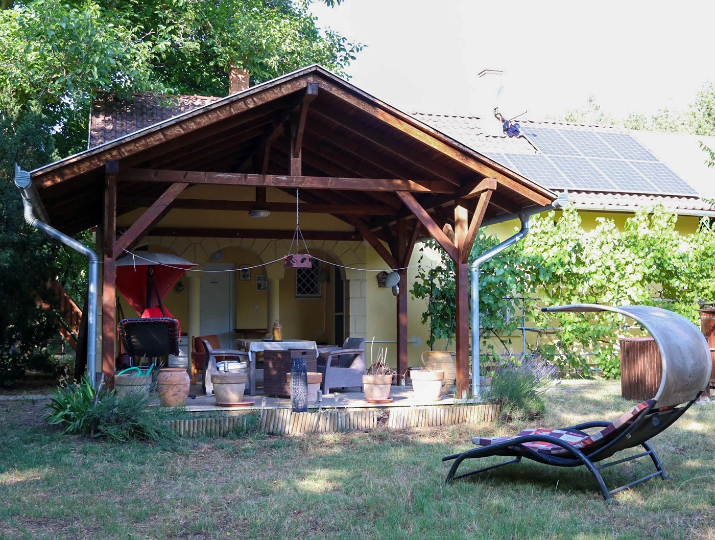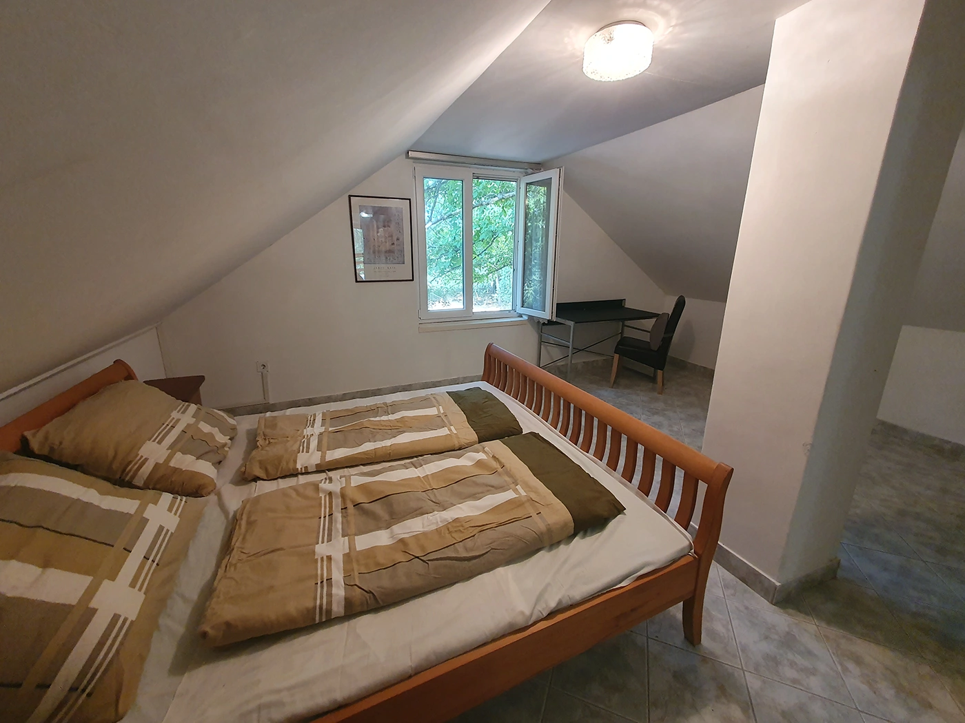 The house’s terrace and built-in grill are perfect for gatherings with friends and barbecues. The upstairs apartment is completely separate and only accessible from the outside. In addition to two rooms, a bathroom with a toilet, and a hallway, it also has a 22 sqm terrace.