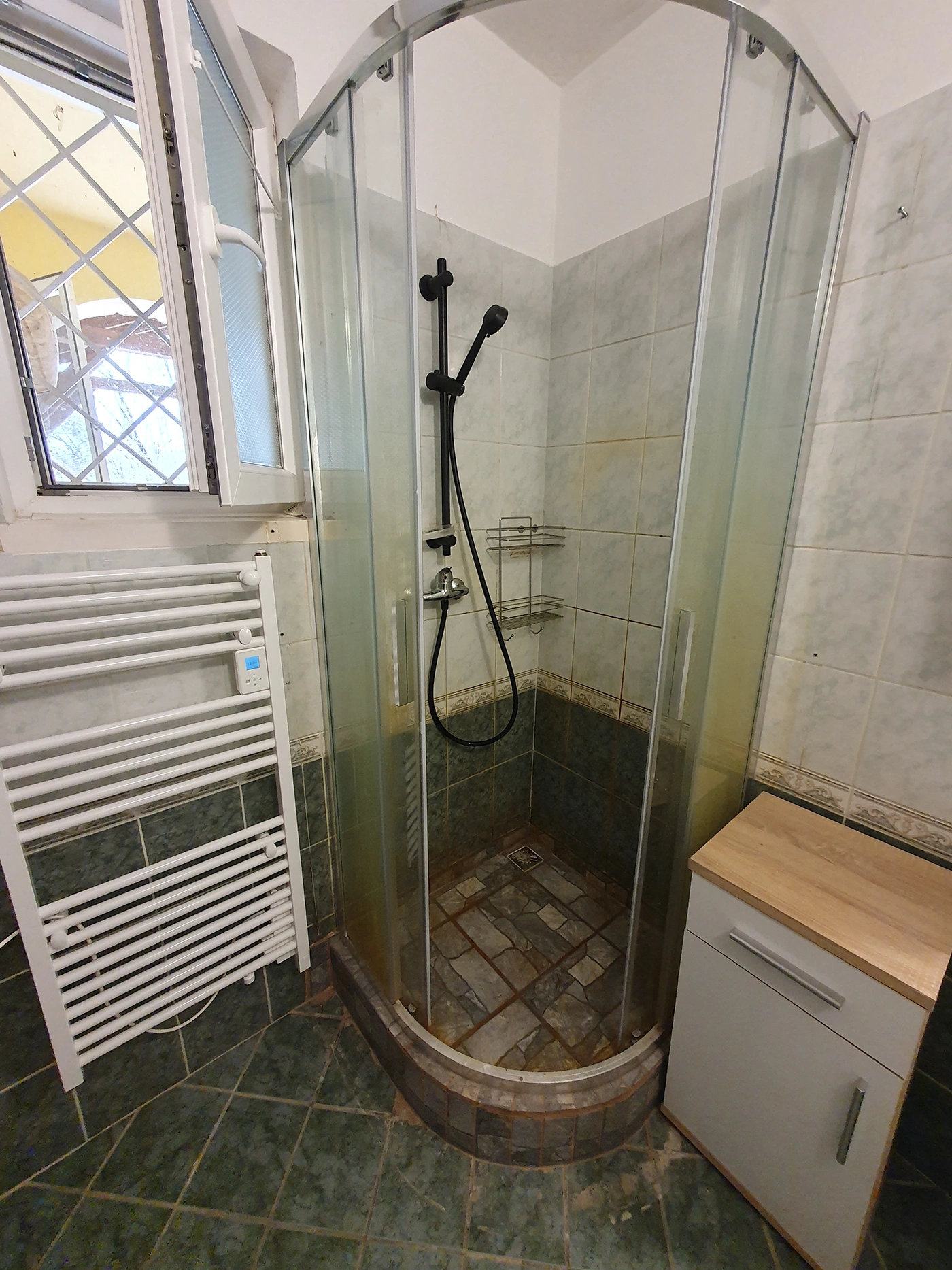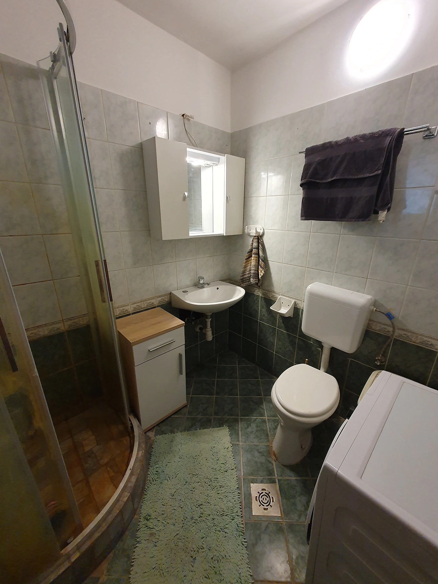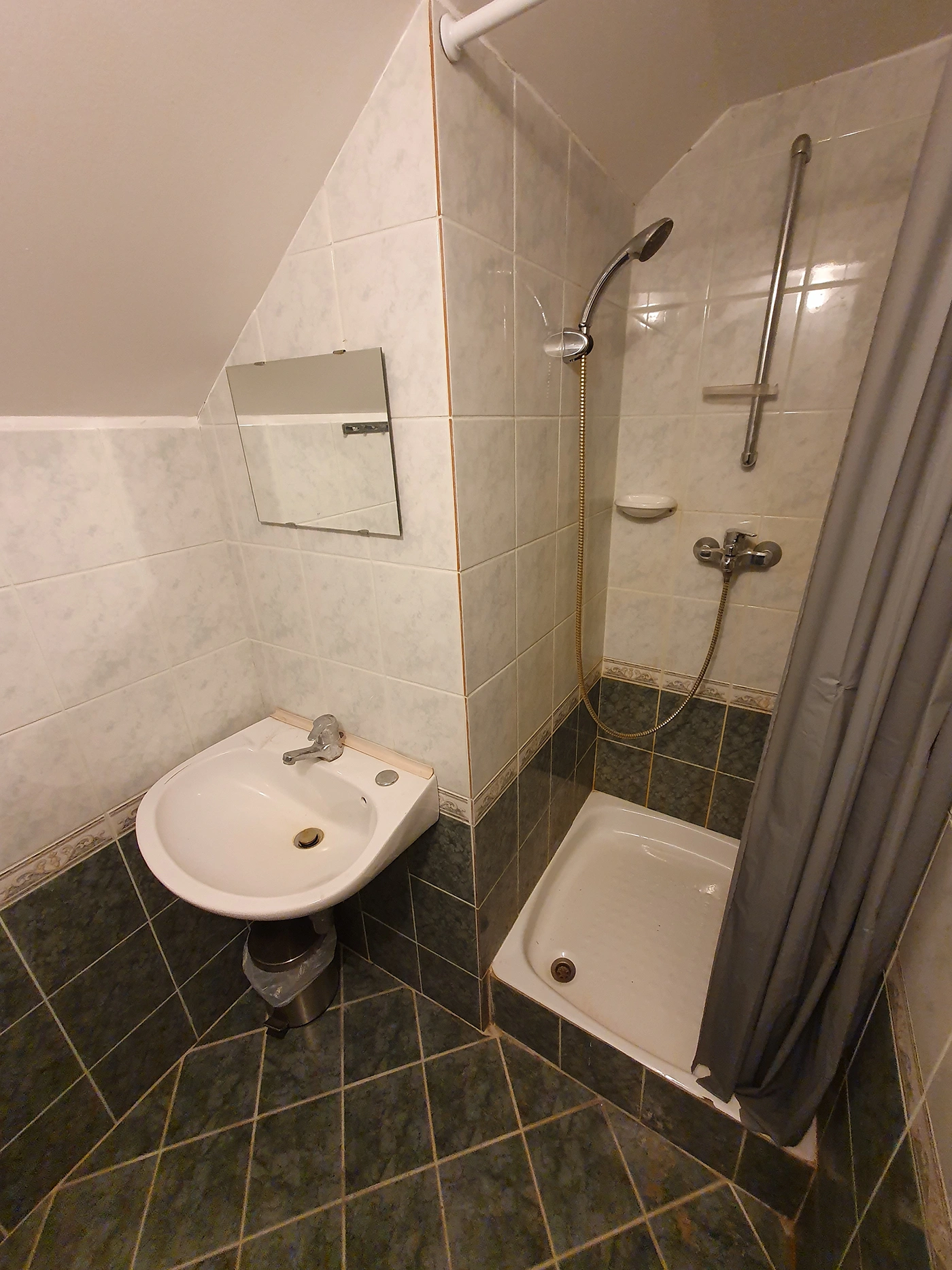 - A bathroom with shower and toilet
