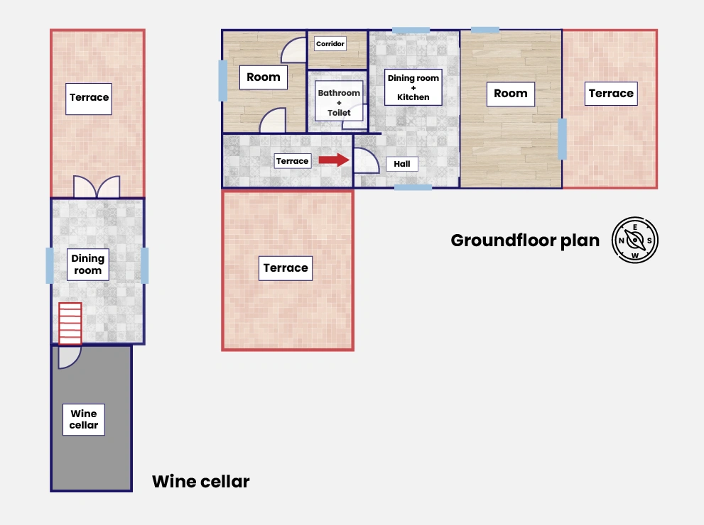 - Wine cellar: 8 m² + 15 m²