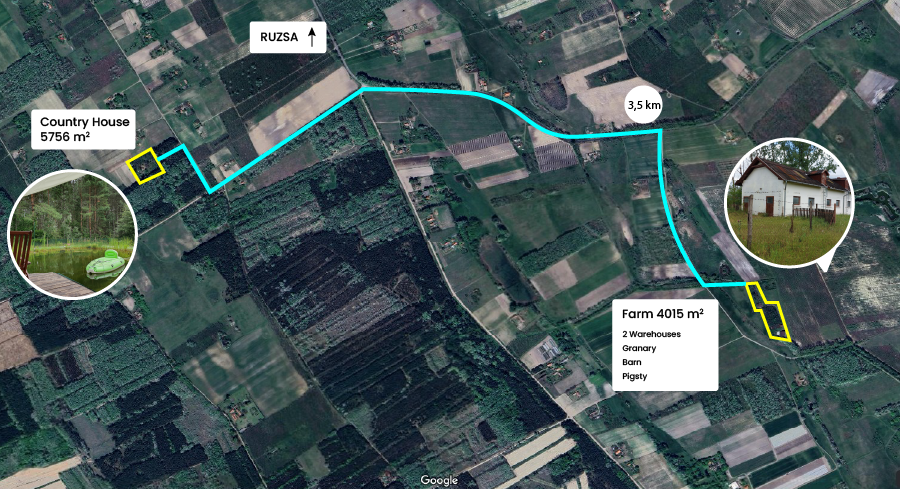 - Plot: 5,756 m² (“Kivett tanya” & “gyümölcsös”)